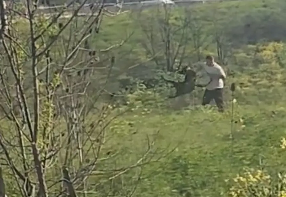 Yeşilkent Mahallesi’nde 13 Nisan’da meydana gelen olayda trafikte seyir halinde olan sürücüler yol kenarındaki boş arazide bir kişinin köpeğine şiddet uyguladığını fark etti. Tasma ile gezdirdiği köpeğe kemerle vuran şüpheliyi görenler, o anları cep telefonu kamerasıyla kaydetti.