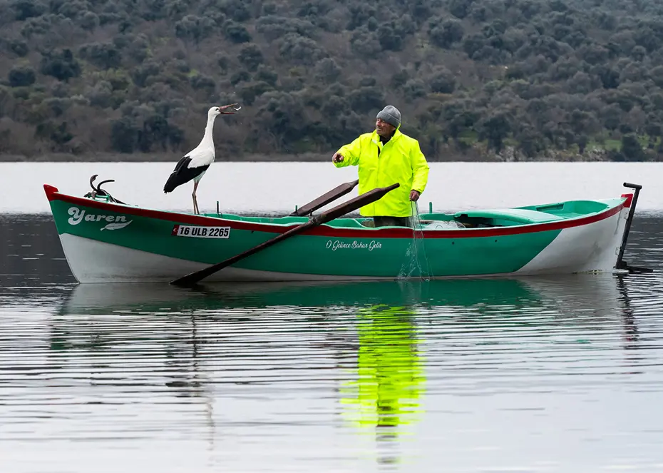 Yaren Leylek, yine Eskikaraağaç Leylek Köyü’ndeki Balıkçı Adem Yılmaz’ın kayığına kondu.